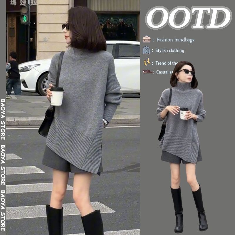 ChicShe New Winter Korean Style Loose Slimming Pullover Irregular Knitted Sweater Casual Versatile Shorts Two-Piece Set