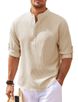 Cotton Linen Hot Sale Men's Long-Sleeved Shirts Spring Autumn Solid Color Stand-Up Collar Casual Beach Style Plus Size S-5XL