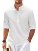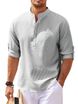 Cotton Linen Hot Sale Men's Long-Sleeved Shirts Spring Autumn Solid Color Stand-Up Collar Casual Beach Style Plus Size