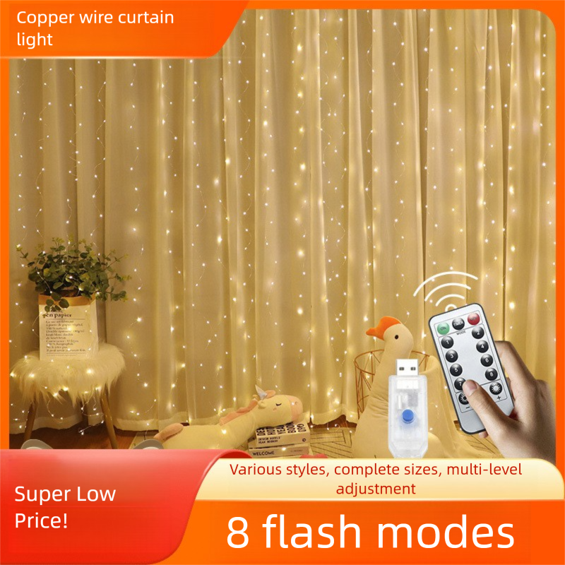 "> Product Name: Curtain Light Product size: 3m (length) * 3m (sag) Wire color: Silver copper wire (default) Light Bulb Color: Warm White, Pure White, Yellow, Blue, Green, Pink, Purple, Four Colors Power Supply: 5V USB Interface 3 Waterproof Remote Control Battery Box Plug-in 8 Functions Solar 8 Functions (Contact Customer Service) Number of lights: 300 pieces Power: 3W Packaging: Regular OPP bag packaging in box-based packaging reduced by 20g, color box packaging: Specifications 12*7*6.5 6m * 3m Boxed 13*7*9 Outer Box 37*28*47 Hook Model 200g, Without Hook 180g Specifications Weight Outer Box Quantity Weight of the box 3m * 1m 70g 50*37*35 100 8.5kg 3m * 2m 90g 50*37*35 100 11.5kg 3m * 3m 105g 50*37*35 100 12kg 3m * 1m Hook Style 90g 50*37*35 100 10kg 3m * 2m Hook Style 105g 50*37*35 100 11.5kg 3m * 3m Hook Style 120g 50*37*35 100 13.5kg