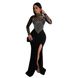Women's clothing hot diamond pearl see through waist and hip elastic slit dress