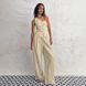 Women's Commuter Fashion Khaki Off-shoulder Cotton and Linen Vest Trousers Two-piece Set