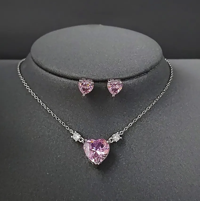Designer Classic Crystal Heart Pendant Necklaces Earrings Bohemian Style Shiny Zircon Earing Simple Design Boutique