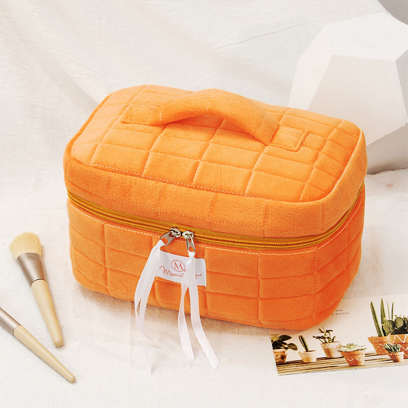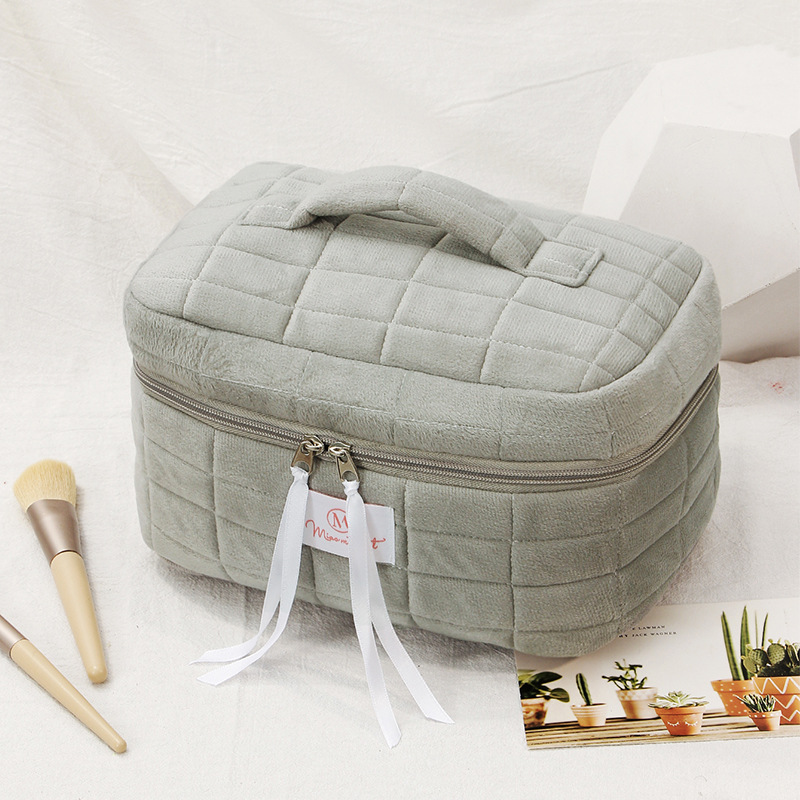 Exclusive Quilted Storage Cosmetic Bag Large Capacity High Value Solid Color Travel Fabric Quilted