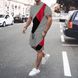 Splicing Set Fashion Sports Men's Round Neck High Elasticity Muscle Short Sleeve Multi Color Splicing Set