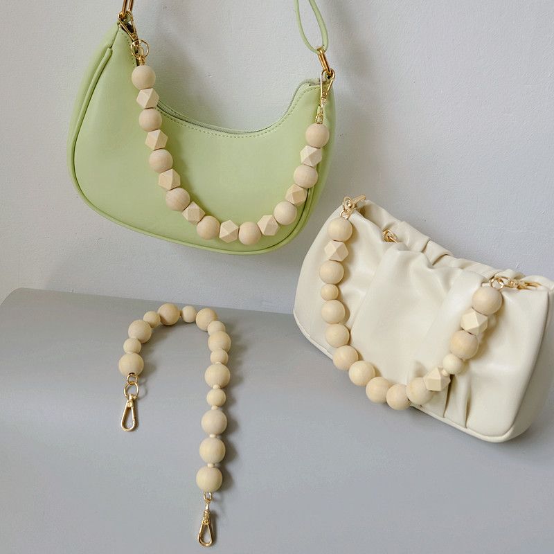 Fashion Vintage Handmade Natural Wood Color Bag Handheld Round Octagonal Wooden Bead Chain