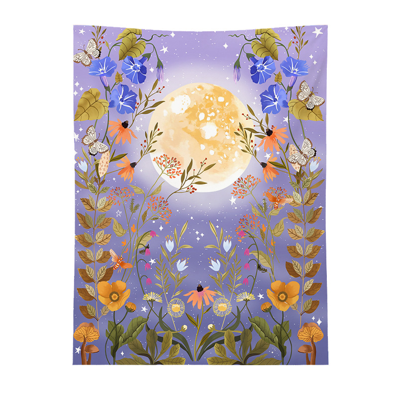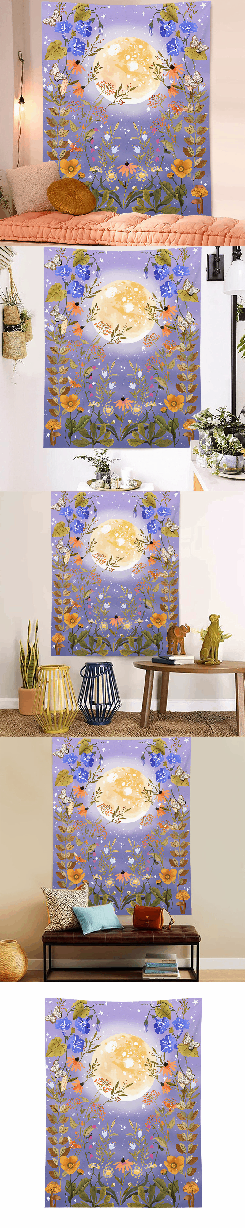 Flower tapestry, wall painting, background cloth, Bohemian wall hanging, bedroom background cloth, moon