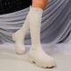 Fly knitting socks boots women's new autumn and winter large size thick soled solid color round head long skinny boots