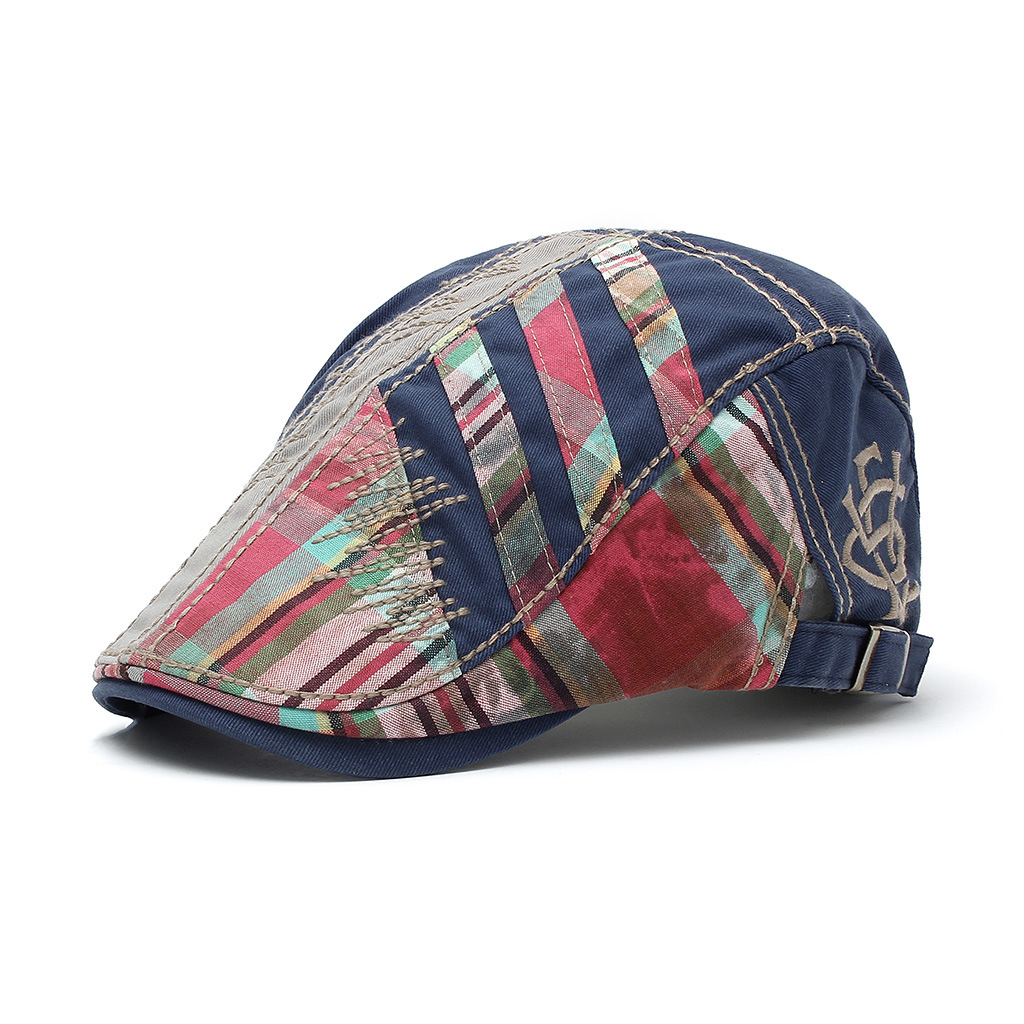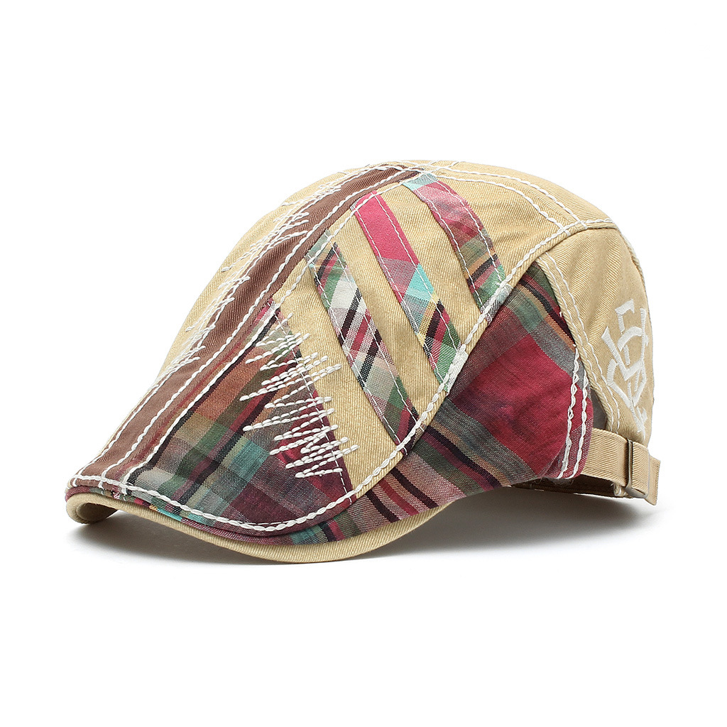 Four seasons splicing checkered cap to make old men and women sunshade front hat to prevent original design beret