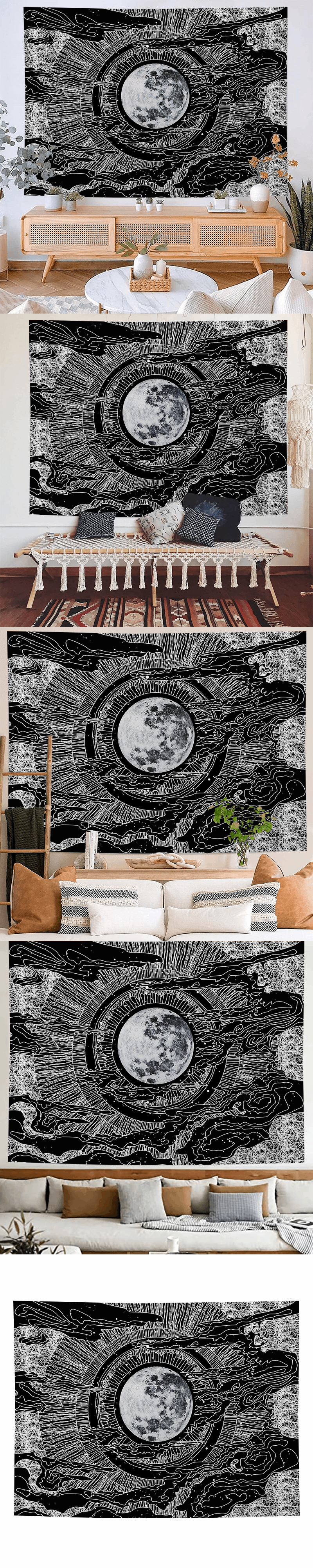 Full moon hanging painting hanging cloth wall cloth ins hanging cloth background cloth live broadcast Bohemian hanging decoration bedroom background cloth fog