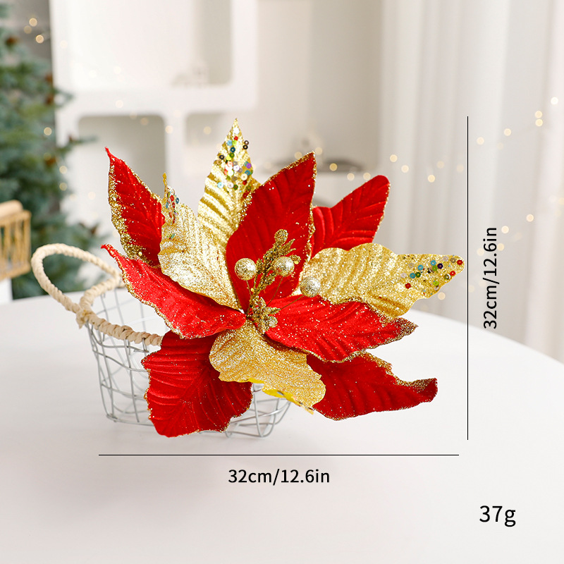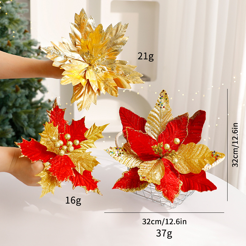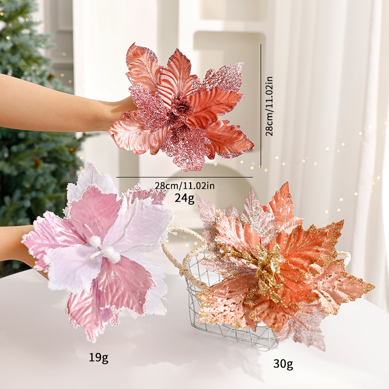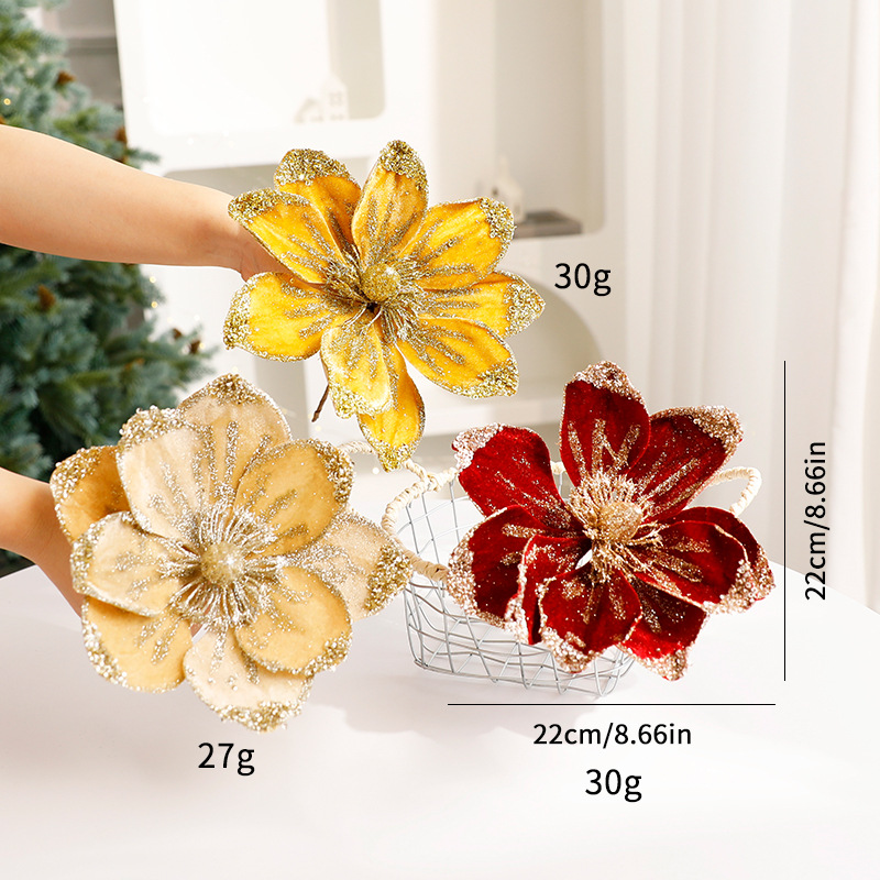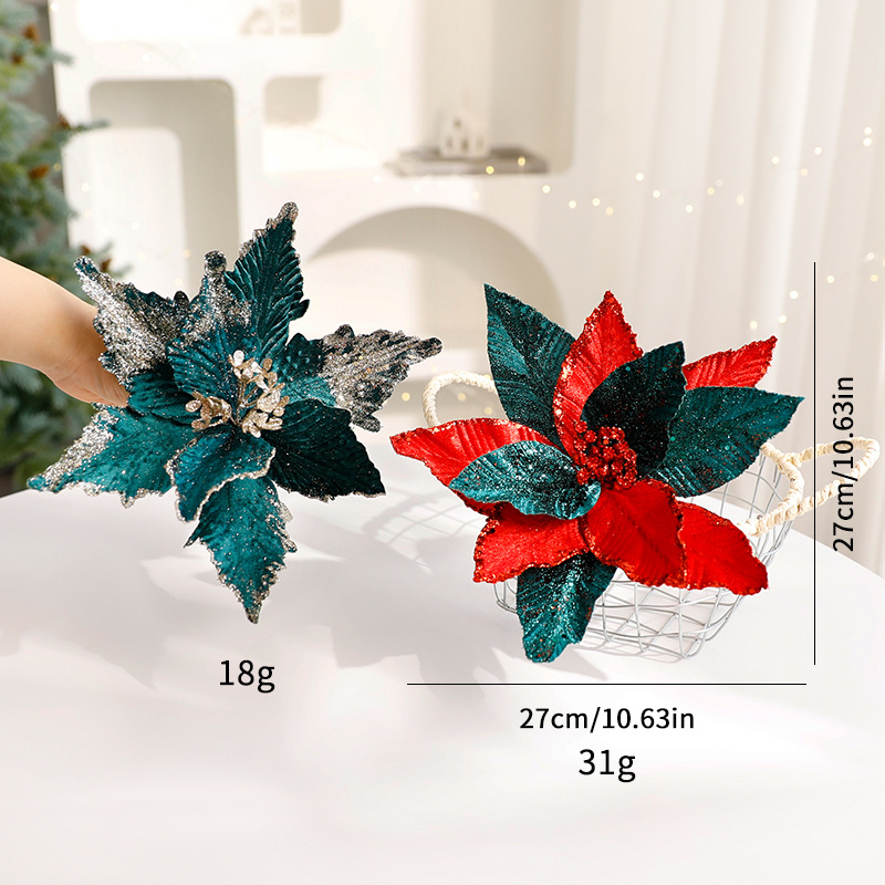 Glitter Floral Christmas Decorations – Shimmering Tulle & Velvet Artificial Flowers For Table Centerpieces & Holiday Styling