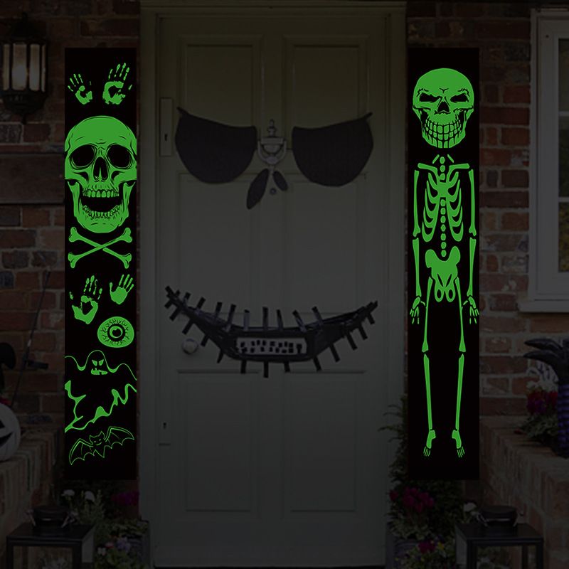 Glow In The Dark Halloween Banner, Outdoor/Indoor Decoration Flag For Garden, Yard, Door, Window, Party Scary Decor With Ghost & Pumpkin Patterns