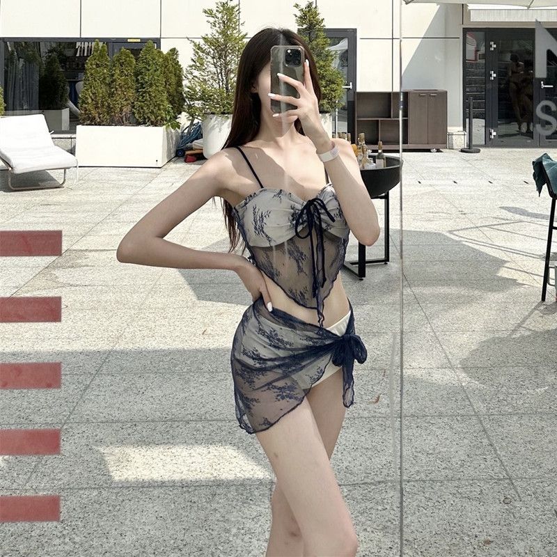 GraceChic New High-end Bikini Thin Strap Color-blocking Lace Sexy Vacation Three-piece Set Hot Spring Swimsuit For Women