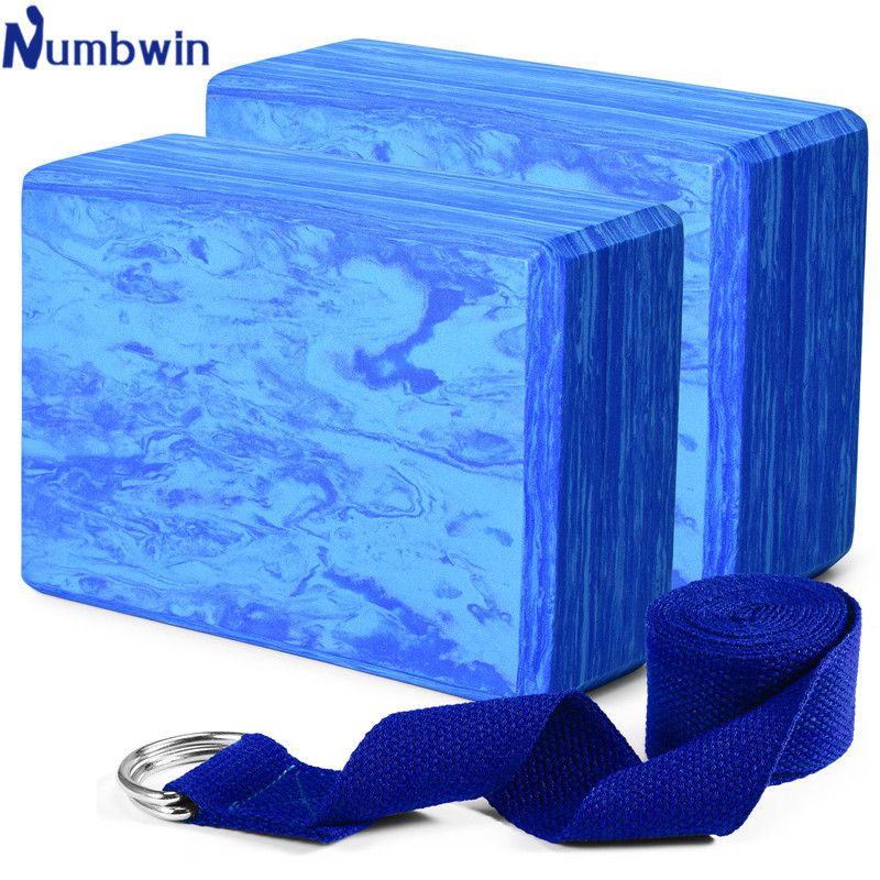Yoga Brick Three-Piece Set Combination: 2 Gradient Blue Yoga Bricks + 1 Stretch Strap, Complete Set Packed in OPP Bag, Weight 350g, Dimensions Approximately 25x20x15cm.