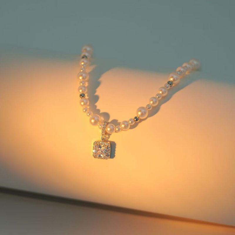 He Family Same Style Commuting Simple Bubble Sugar Cube Shi Family Pearl Necklace Niche Design Sense Autumn Winter New Sweater Chain