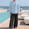 Men's Clothing Button Long Sleeved Robe Straight Pants European And American Henry Collar Casual Shirt Cotton And Linen Men's Suit