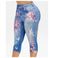 High waisted printed bottom imitation denim slim fitting cropped pants for fashionable women's summer stretch pants