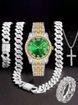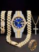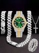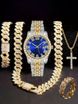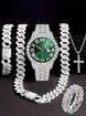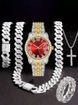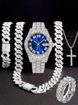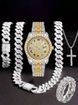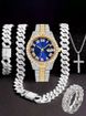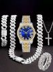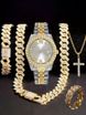 Hip Hop Diamond-Studded Watch Five-Piece Set with Diamond-Shaped Cuban Chain Cross Necklace and Cuban Ring