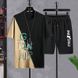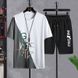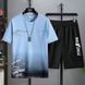 Ice Silk Summer Men's Korean Style Casual Comfortable Basketball Beach Sports T-Shirt Short Sleeve Two-Piece Set