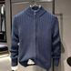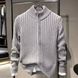 Japanese Minimalist Knit Cardigan – Vintage-Inspired Stand Collar Sweater (Unisex, Oversized Fit) In Classic Grey & Navy