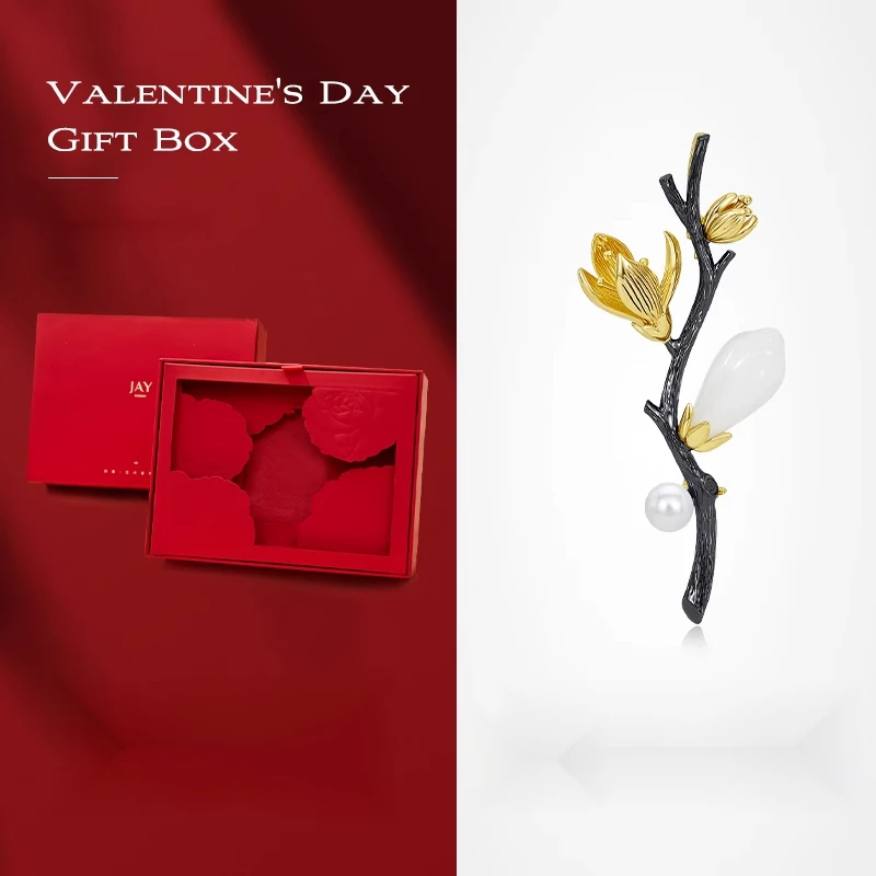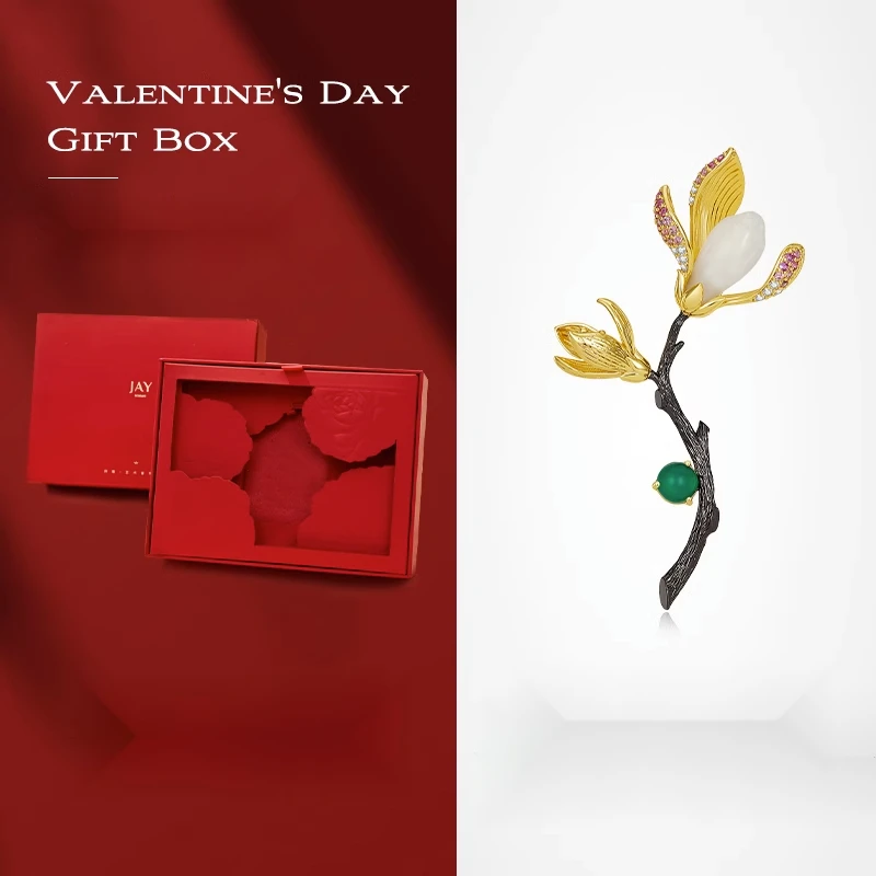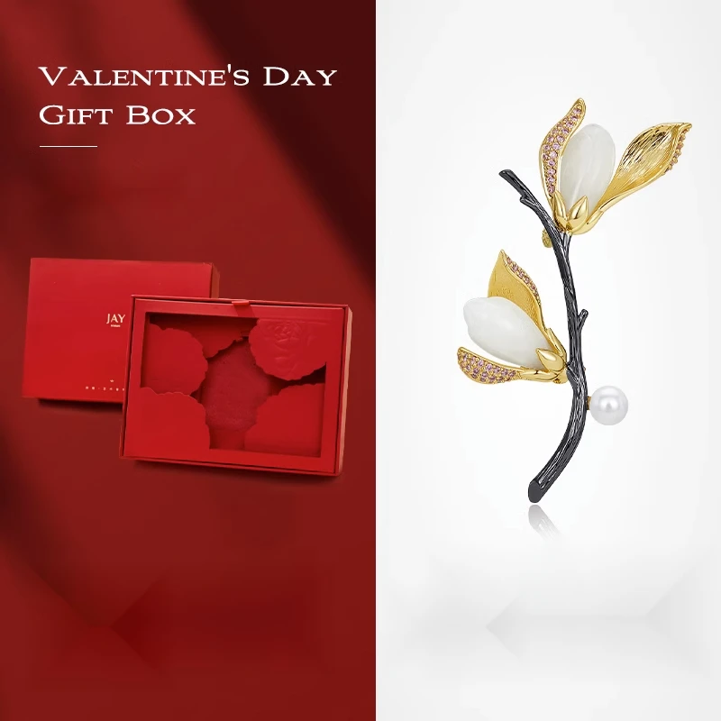JAY Magnolia brooch high-end female luxury temperament pin natural Hotan Jade high-end brooch gift