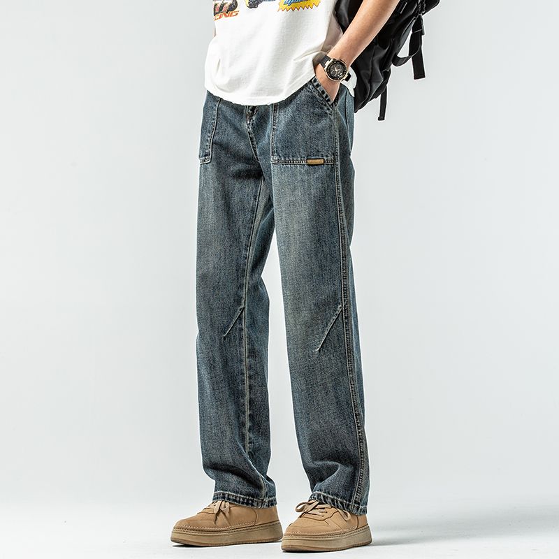 Jeans Men's Loose Straight Mid-waist Harlan Splicing Pleated Design Labeling Mi Ke Shili Cocoa Eight-barrel Xiansen K11 Denim Know Clothes Decoration