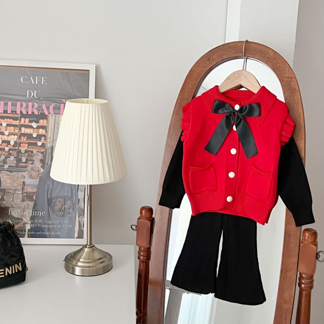 JINYONG Girls' Sweater New Fashionable Long sleeved Western Knitted Top Flare Pants Children's Two Piece Set