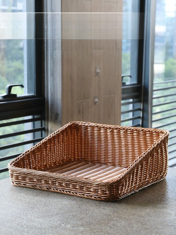 Kens Rattan Desktop Storage Study Room Book Magazine Organizer Supermarket Trapezoidal Snack Display Bread Finished_voghion.com