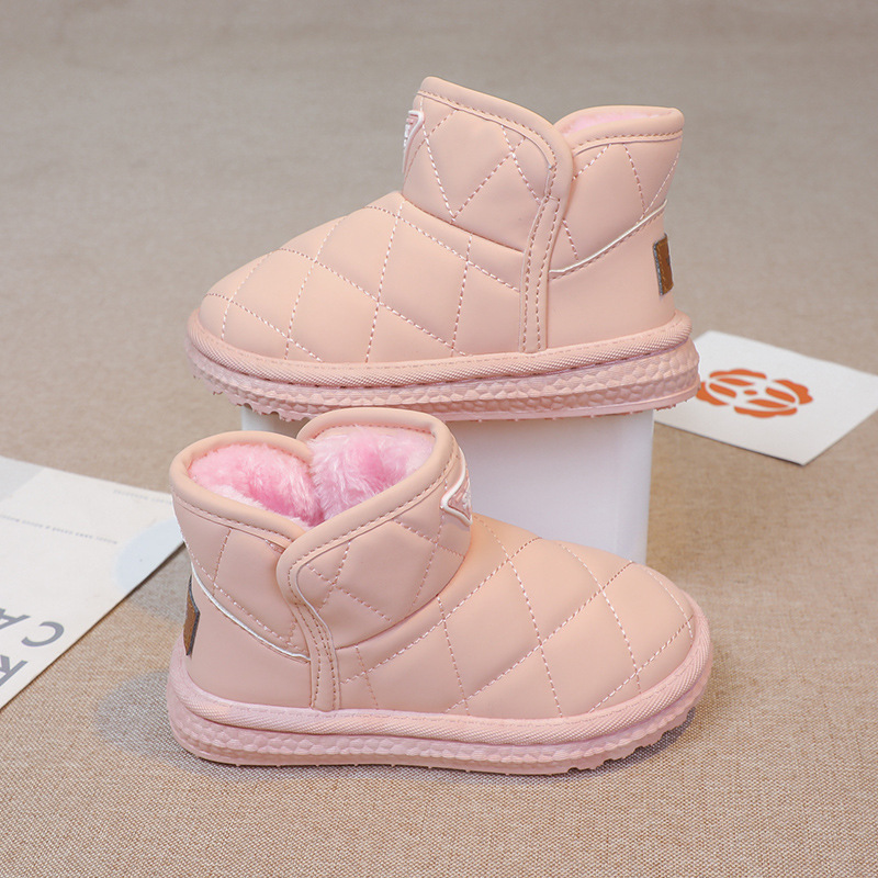 Children's shoes, girls' cotton shoes, warm 2024 winter new children's snow boots, medium and large children's plush thick cotton short boots