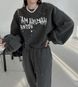 Korean Chic Winter Set – Oversized Letter Print Sweatshirt & High-Waist Drawstring Pants (XL, Charcoal Grey)