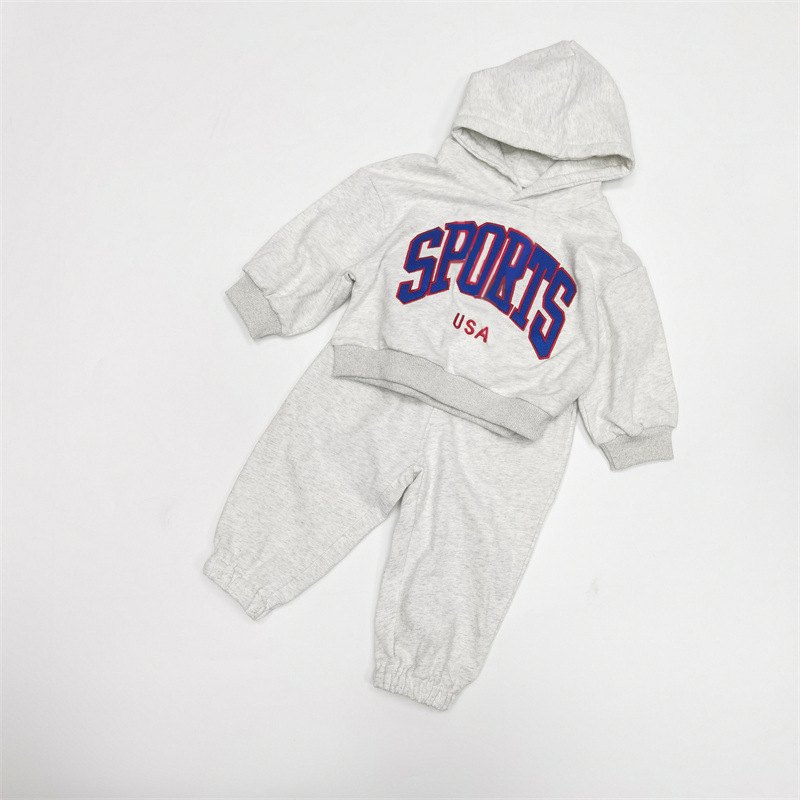Korean version of children's spring and autumn new set for boys and girls, simple and westernized letter hooded sweater casual two-piece set