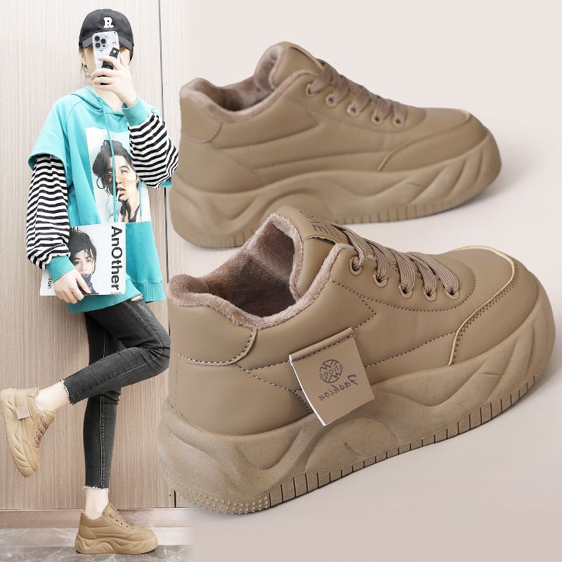 KT2815 new 2024 autumn and winter cotton shoes women's shoes simple solid color thick sole with plush insulation high top to increase height for students