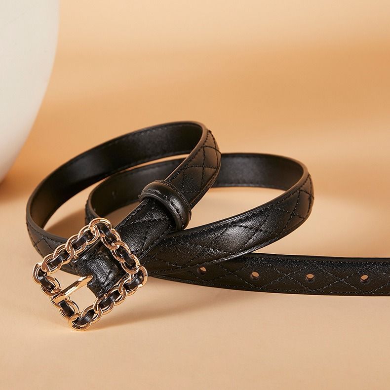 Ladies Belt Fashion Versatile Thin Belt New Dress Decoration Smooth Button Skirt Strap Women's Pant Strap Women's