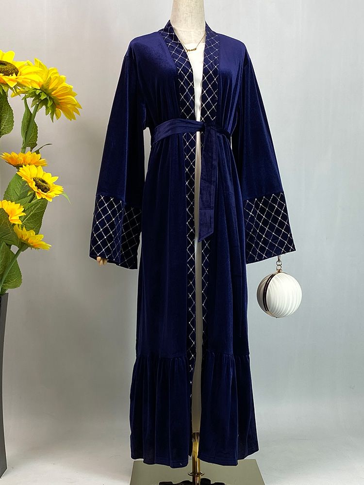 Latest Muslim Fashion Modest Abaya Loose Sleeves Front Open Cardigan Sequins Mesh Velvet Warm Coat Abayas For Muslim Women Eid