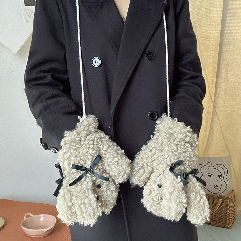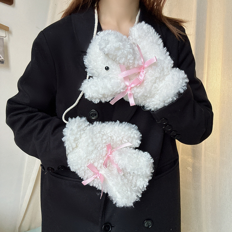 Lazy Holiday~Shop/Teddy Hairy Cartoon Cute Gloves Hat Scarf 3-Piece Set for Autumn and Winter Warmth
