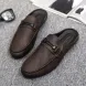 Leather Men Half Slippers Summer Breathable Mens Casual Shoes Slip-on Lazy Driving Shoes Comfortable Walking Loafers Moccasins