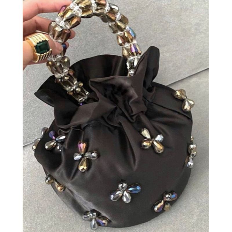 Light Green Crystal Bucket Bag Hand-Beaded Satin Handbag Fall/Winter 2025 New Stylish Versatile