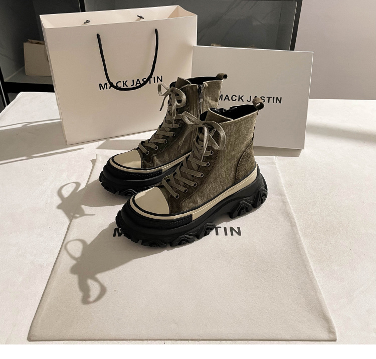 Luji genuine European station high-top denim canvas shoes women's 2024 spring new Martin boots thick-soled niche short boots