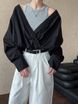 Luxi Spring French High-end Silhouette Commuting Off Shoulder Shirt With Knitted Vest Underneath, Two-piece Top For