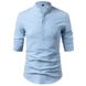 Men's Casual Linen-Like Short Sleeve Shirt With Stand Collar – Breathable & Lightweight For Summer & Spring
