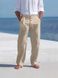 Men's Cotton Linen Drawstring Pants With Button Decor - Straight Leg Breathable Summer Beach Trousers For Casual Comfort
