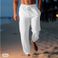 Men's Cotton Linen Pants Summer Casual Beach Drawstring Elastic Waist Straight Leg Breathable Comfortable Trousers