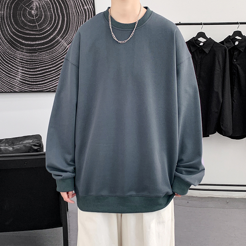Men's hoodie 2023 Spring and Autumn Trendy Solid Candy Off Shoulder Bottom Shirt Round Neck Pullover Top