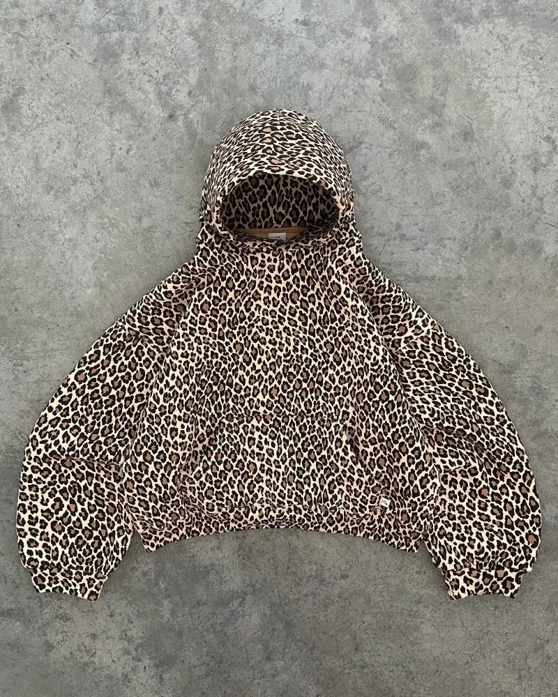 Men's Hoodies Leopard Print Plus Veet Hooded Sweater Retro ed With Plush Winter Warm Zipper Shirt Oversized Unisex loose