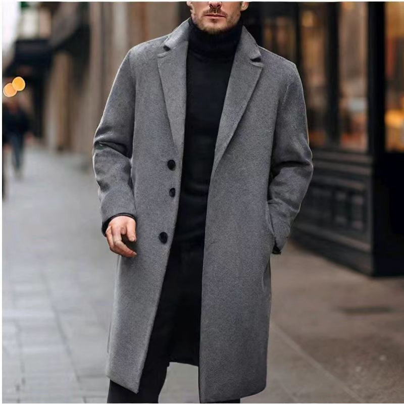 Men's Clothing Men's Casual Long Trench Coat Wool Overcoat Single Breasted Suit Collar For Formal & Casual