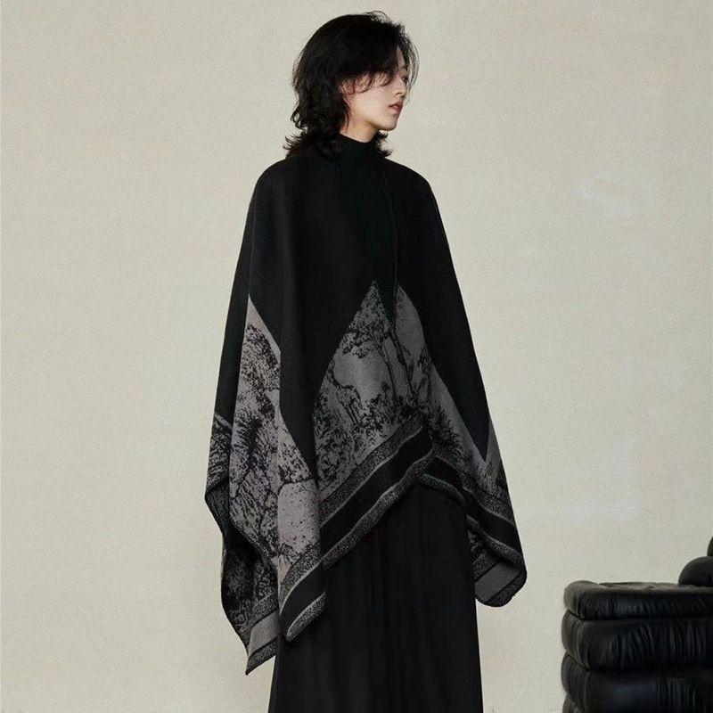 Minimalist 2025 Niche Cashmere Dark Slit Cloak Fall And Winter Warm, Men And Women Double-sided Ethnic Style Shawl