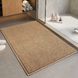 Tonal Layering – Pair camel/beige mats with wooden vanities