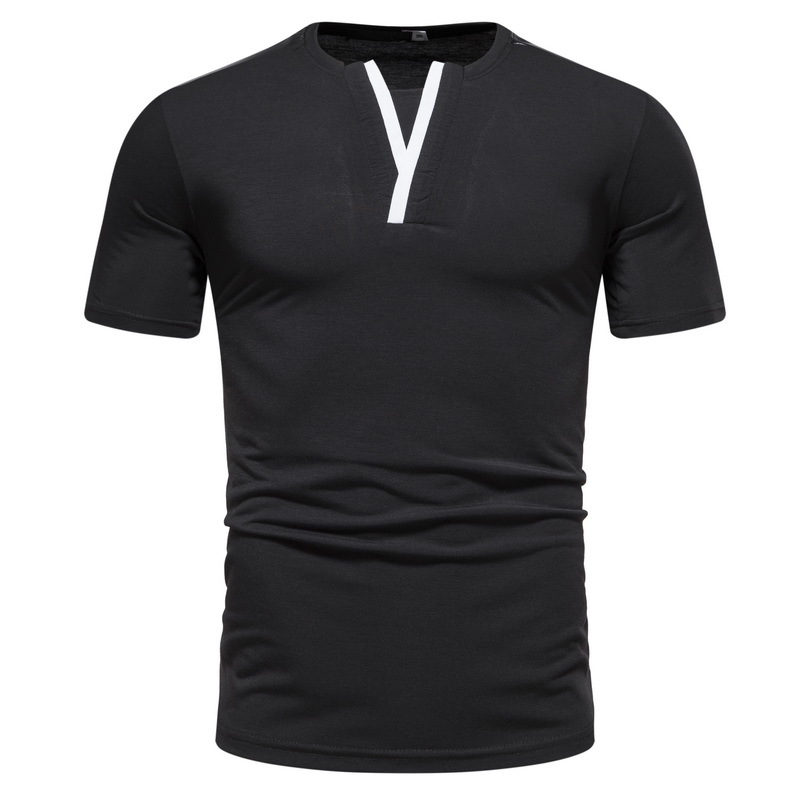 Muscle slimming summer new casual fashion top patchwork collar letter Y design short sleeved T-shirt for men