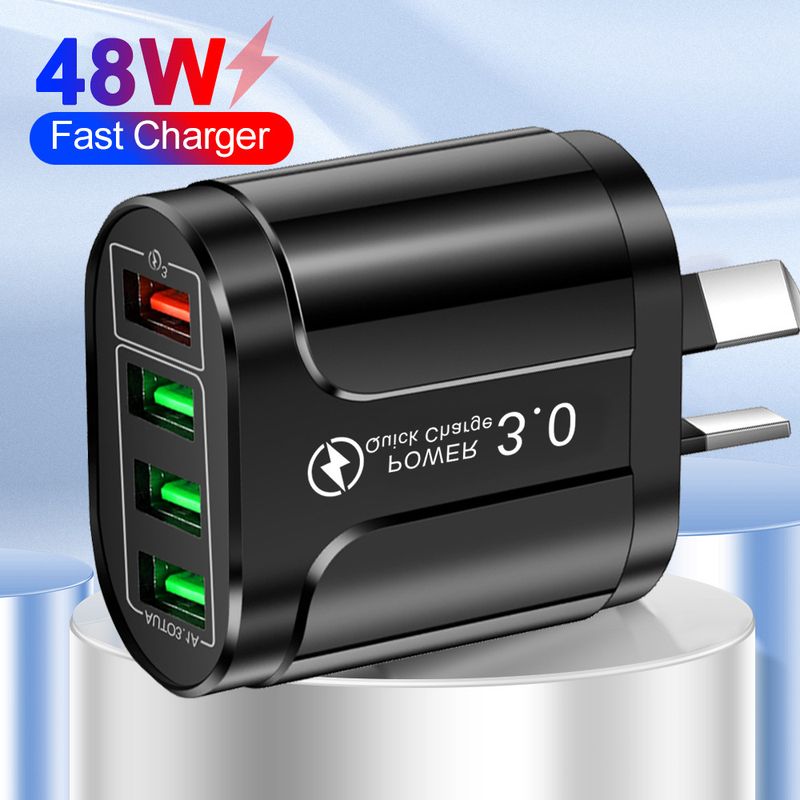 Music Festival LED with light, 4USB Korean and Australian QC3.0 fast mobile phone charger, 5.1A multi USB travel charging head