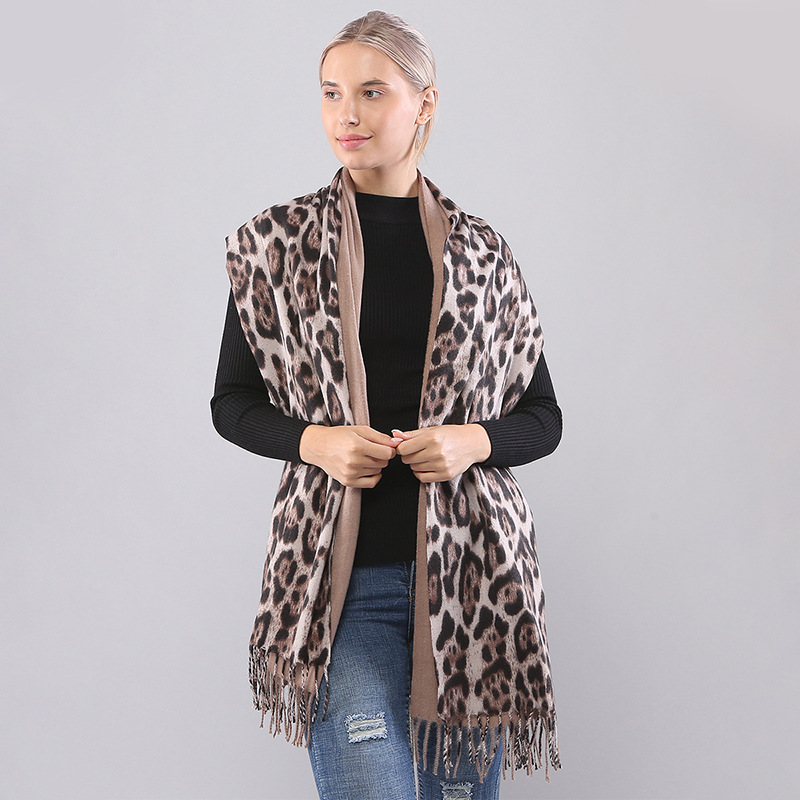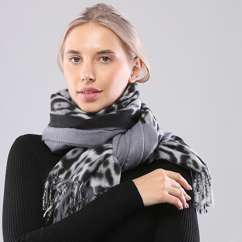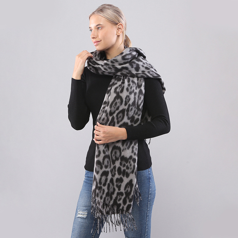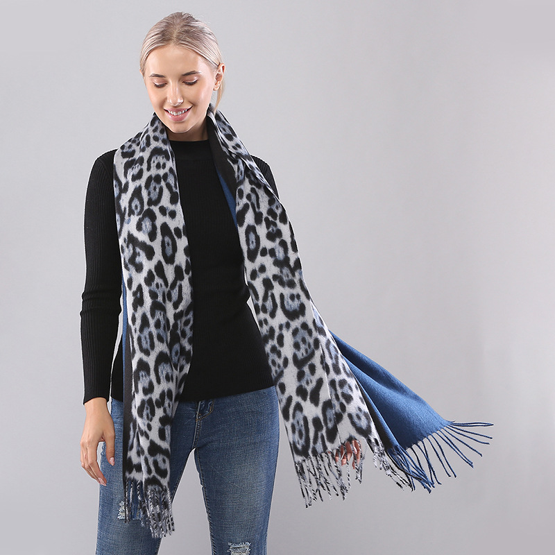 New Autumn and Winter Long Scarf with Leopard Print Tassels Double-sided Air-conditioned Room for Warmth Thickened Outer Layer with Shawl
